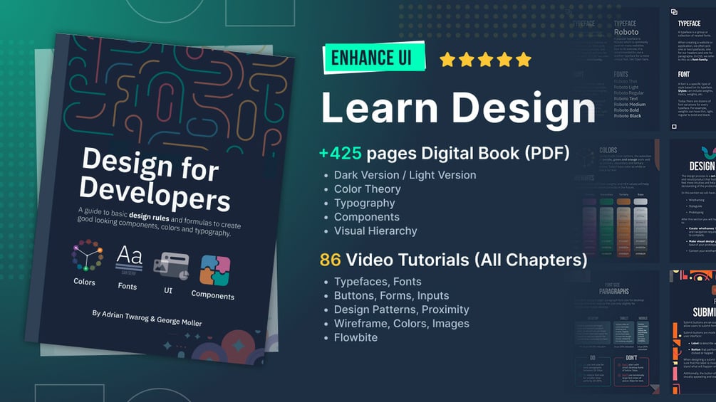 Design for Developers! Learn design as a developer to improve your UI, UX, to make apps and websites look great! Get started by getting the book which will teach you all the fundamentals for enhancing your UI designs.